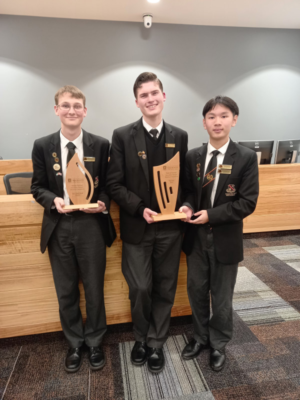 Runners-up: Hamilton Boys' High School represented by Tanyon Osborne, Terrence Fu, and Connor Downey-Parish