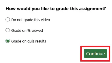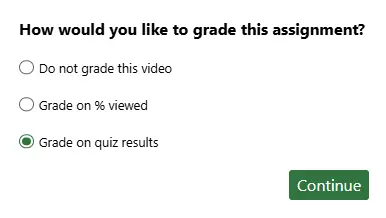 - Select Grade on % viewed if you would like the percentage of the video watched to be reported to the gradebook.