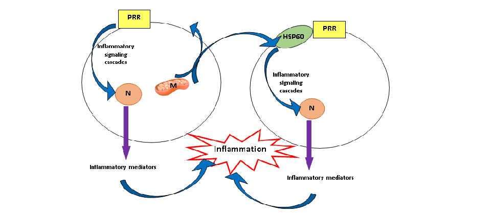 The review paper is focused on diabetes-induced changes in the central nervous system and the potential role of the HSP60 protein as an initiator of oxidative stress and potential modulator of neuronal inflammation. They suggest that oxidative stress mediated mitochondrial dysfunction stimulates the upregulation of mitochondrial heat shock protein 60 (HSP60) and ultimately initiates inflammatory pathways. HSP60 also could be a focal point in the development of a biomarker of neuronal inflammation as HSP60 is known to be significantly elevated in diabetic patients. Interestingly, secretion of HSP60 from neuronal cells suggests that inflammation could spread to other brain cells (such as astrocytes).