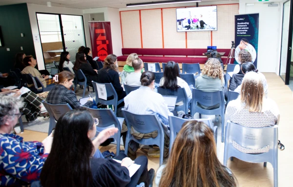 Deputy Vice-Chancellor Research Professor Gary Wilson addressed the Hamilton cohort, noting that the event highlights the strong collaboration between University researchers, the wider community, and business and commercial partners.
