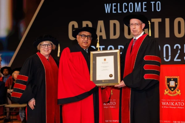 Sir Anand received his Honorary Doctorate in a graduation ceremony in The Pā on campus at Waikato.