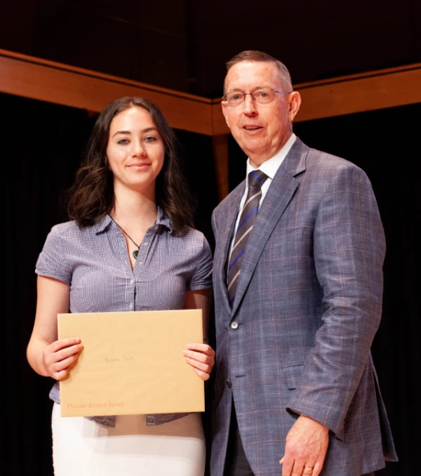 Student winner Brooke Smith with Vice-Chancellor Neil Quigley.