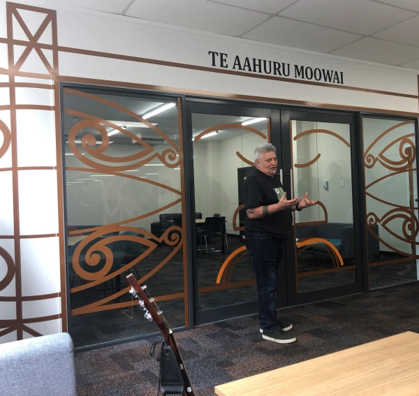 Pirimi Roberts, an Executive member of Tūmata Kōkiri, the Māori Student Association for Education, who gifted the room’s name, says Te Aahuru Moowai means a safe haven or a safe place of shelter.