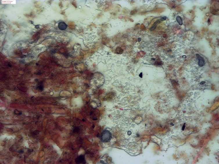 We performed microscopic and biochemical analyses on the stick, showing it had come into contact with animal fat. Parts of the stick were covered with lipids – fatty acids that cannot dissolve in water and can therefore remain on objects for vast lengths of time.