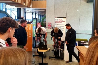 The whirl of erg bikes filled the central atrium, as students raced against each other in the health, sport and wellbeing zone, monitored by sports researchers from the University of Waikato Adams Centre for High Performance.