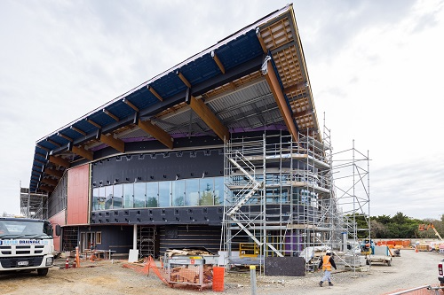 “With the roof now complete we can see the final shape of The Pā emerge. It is a building that we believe is architecturally and functionally unique among buildings in New Zealand,” says University Vice-Chancellor, Professor Neil Quigley.