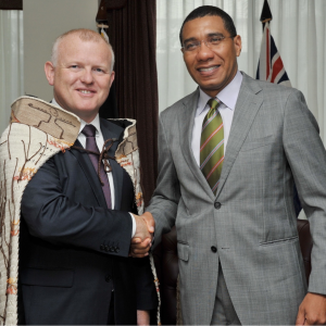 Daniel presents his High Commissioner credentials to Prime Minister Holness in Jamaica.